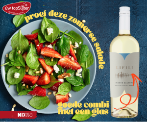 Lifili Bianco Salento en een zomerse salade met aardbeien